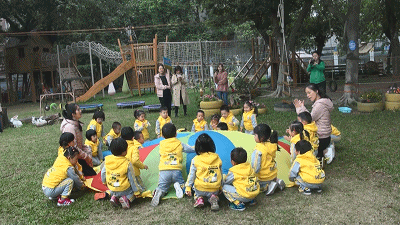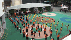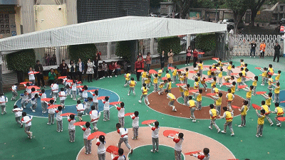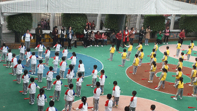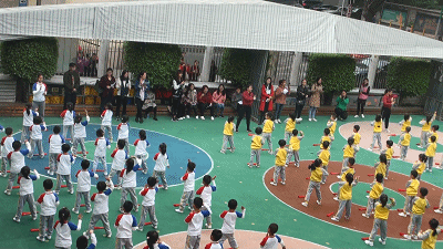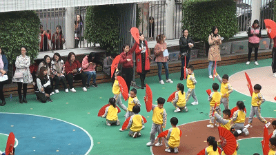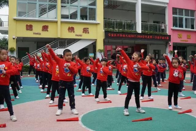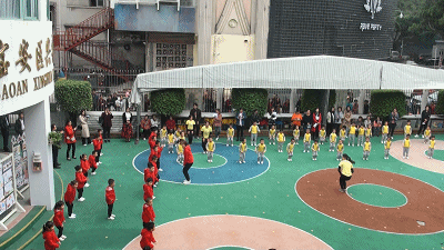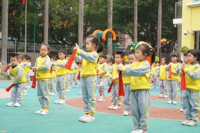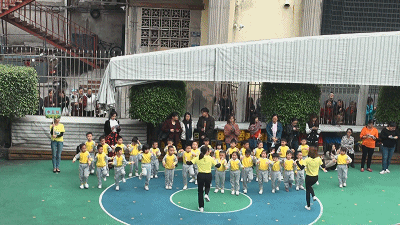 ☝☝这里的孩子都很喜欢粤语歌曲。孩子们在做早操时或在做完早操走回班级的路上,都会自然地哼起「何家公鸡何家猜」。