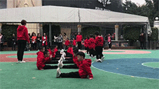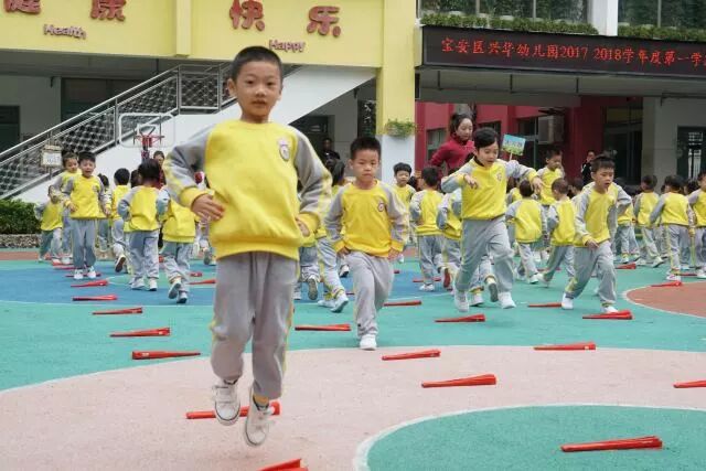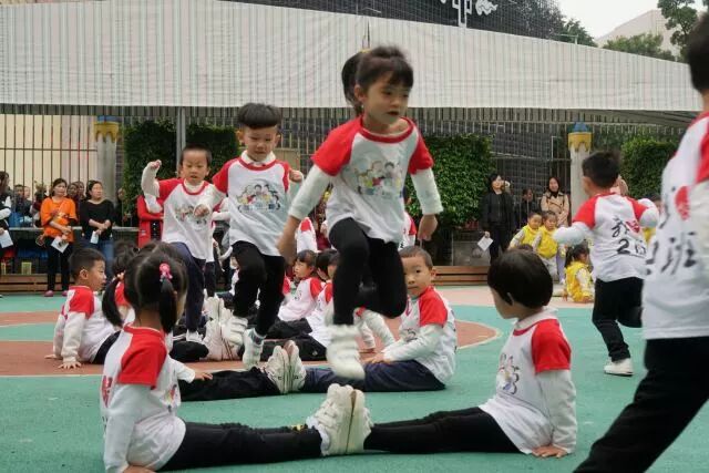 ☝☝中班早操 | 两个孩子相对而坐,伸直双腿充当障碍,另外一列的小朋友则迅速行进向前跳。看!跳跃的孩子们就像一个个小飞人!