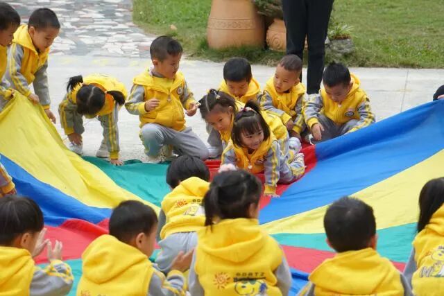 别以为只有婴儿才要爬哦!3—6岁的孩子,也需要练习爬的动作。因为爬能够增强孩子四肢肌肉的力量以及腰部肌肉和背部肌肉的力量,提高孩子动作的灵敏性和协调性。看看小班的孩子们,在彩虹伞上爬得不亦乐乎呢!