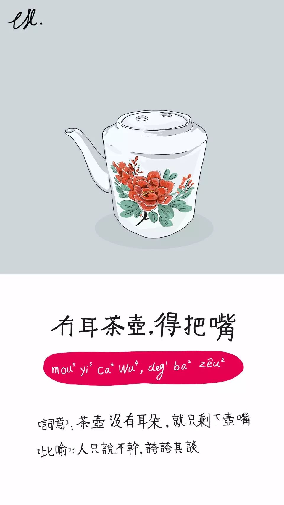 这里的「耳朵」指的是茶壶的耳朵,也就是茶壶的把手。上一期的「崩嘴茶壶」因为壶嘴坏了,所以倒出来的水会四处乱洒,难斟。这一期的「冇耳茶壶」因为茶壶没有了耳朵,那就只剩嘴了,当然就只会说了。
