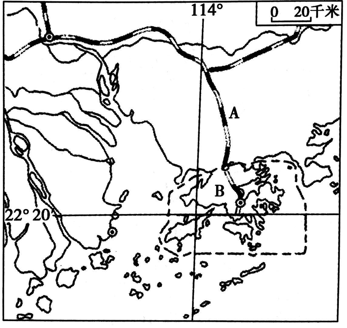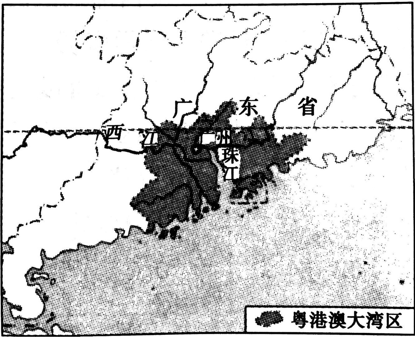 (2017 . 广东)2017年我国“”政府工作报告中提出,研究制定粤港澳大湾区城市群发展规划。读下图,完成1-3题。