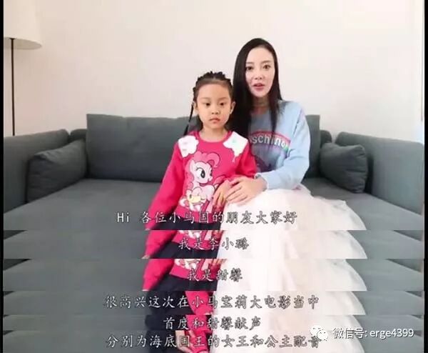 李小璐:HI,各位小马国的朋友大家好,我是李小璐,很高兴这次在小马宝莉大电影当中,首度和甜馨献声,分别为海底国王的女王和公主配音。