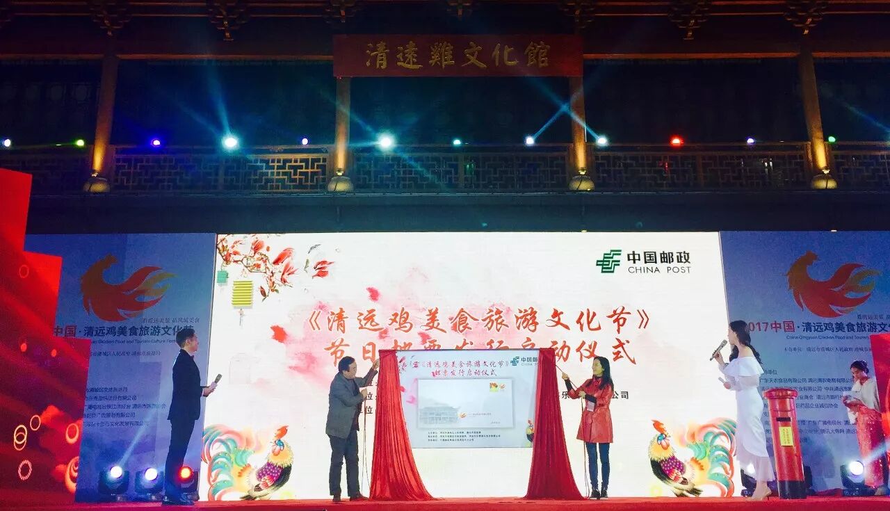 开幕式当晚,清远市清城区人民政府罗婉玲副区长和中国邮政集团公司清远市分公司副总经理朱军上台,为“清远鸡美食旅游文化节”专属个性化邮票发行进行揭幕。活动通过中国邮政特此申办了纪念邮票,更发行纪念首日封及名信片,限量发行2000份,十分具有纪念意义和收藏价值。