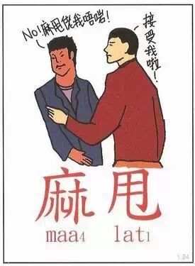 另外一个和“咸湿”类似的词就是“麻甩”了,一般形容男性粗鲁没有修养。其实这个词也是来自外语。在明清的时候,很多传教士来中国都是聚居在广州,不少的传教士是来自法国、比利时之类说法语的地区(像著名的南怀仁就是比利时人),他们除了传教,很多都具有不同的技能,不少会医术,会帮当地人看病,法语里“有病”、“病人”叫malade,有病人了就会说 有malade了,而当时男女授受不亲,去找这些番鬼佬和尚看病的多数都是低下阶层的男性,看到这样的病人大家就会说“你个malade又去搵番鬼佬和尚医病了”,时间长了,这些人就以为malade是指这一类的男性,造出了“麻甩”这个词。