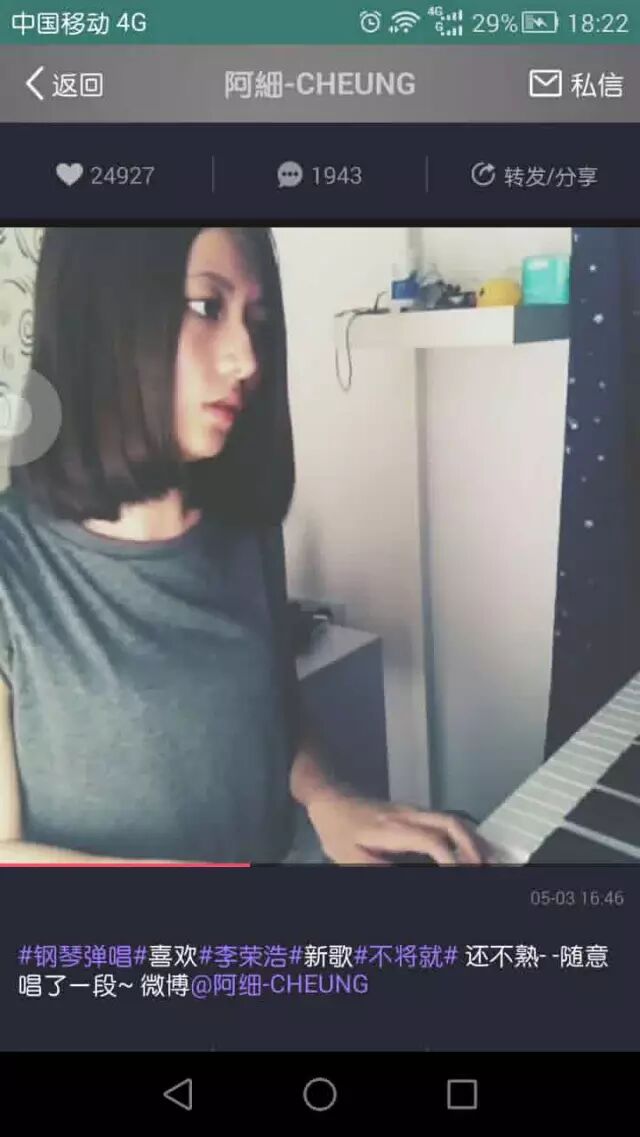 爱音乐噶元气美女一枚,识得弹琴同吉他,系美拍果度好多距噶音乐作品~