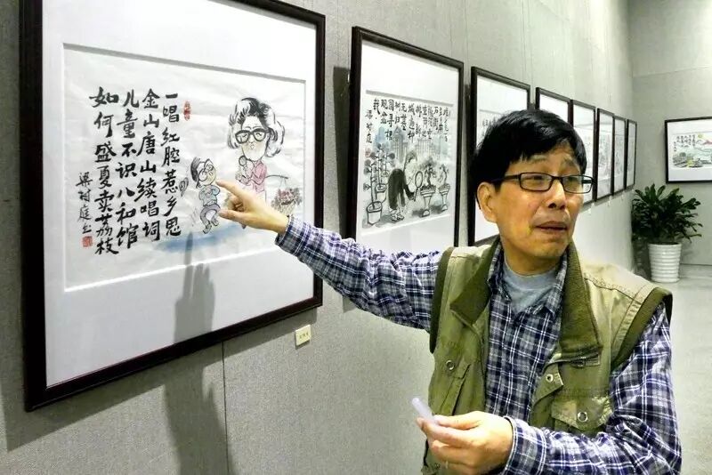 2015年4月12日,“粤谣新传唱  漫画广府情——梁树庭粤语新歌谣漫画展”在广东省立中山图书馆开幕,现场70余幅漫画散发出浓浓的广府文化味。(摄影:郑讯)