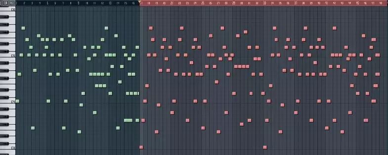 我们选择在副歌的部分开始调加贝斯,使副歌部分听起更浑厚。这里的贝斯编写方法我采用的是和弦的根音,但在个别音上有一定的变化。