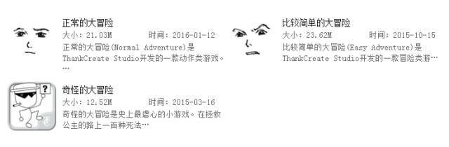 于百度辞职后,制作出《奇怪的大冒险》、《正常的大冒险》和《比较简单的大冒险》系列游戏...