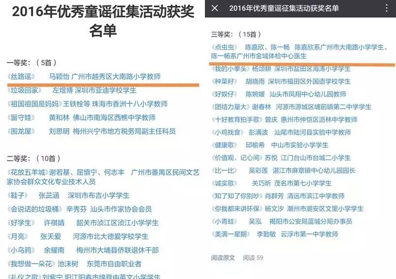 “点虫虫,虫虫飞……”记忆中的童年,这首传统《点虫虫》陪伴着长大,大南同学仔都有自己创作的一首《点虫虫》。 刚收到好消息,这首原创童谣参加有广东省委宣传部、广东省文明办、广东省教育厅等6部门联合开展的2016年优秀童谣征集推广活动获三等奖,音乐马颖怡作品《丝路谣》获一等奖。广州市选送参赛的作品三个获奖,大南路小学占了2名。可喜可贺!