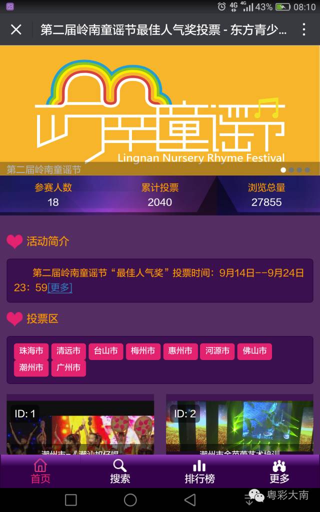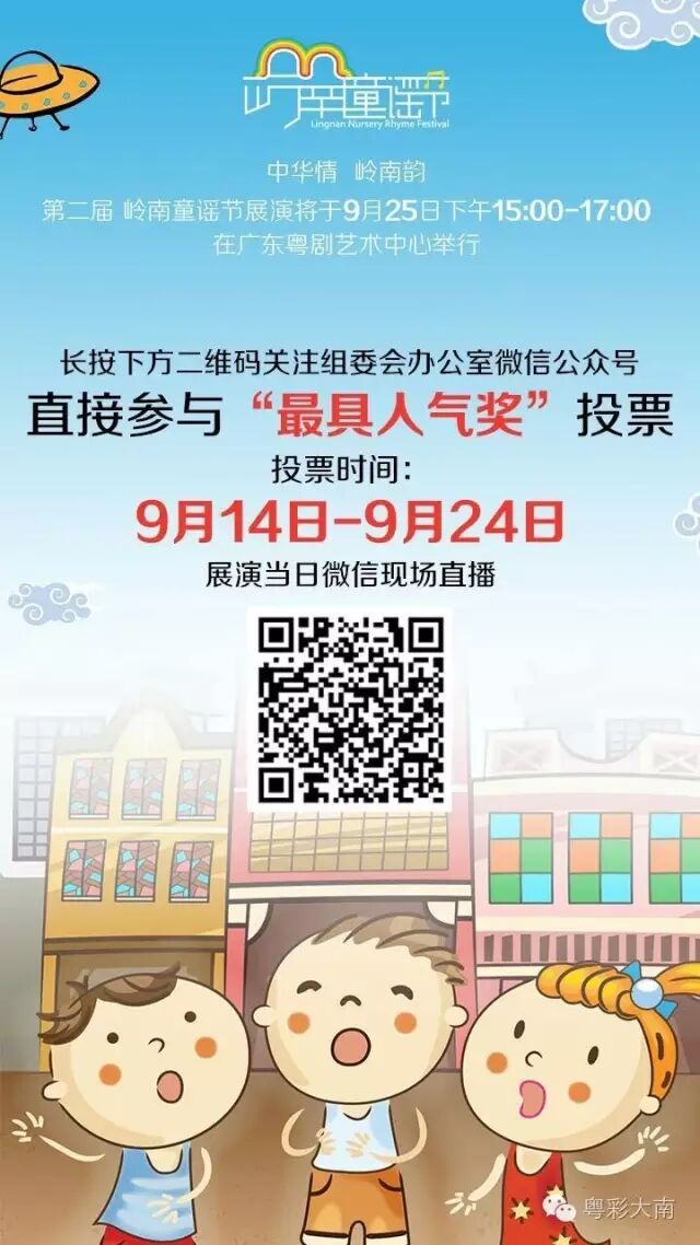 9月14日-25日 开展童谣展演“最佳人气”网络投票,大南路小学 节目编号是18,请大家多多用行动支持下孩子们的原创童谣。原创广府新童谣,到现在为止,都还只有我们在做,作品怎样?当然好听啦!