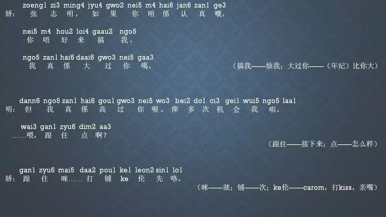 在刚学了这么多好玩的粤语,当然要现学现用一下啦。说不准就真和你的男/女同伴.....咳。