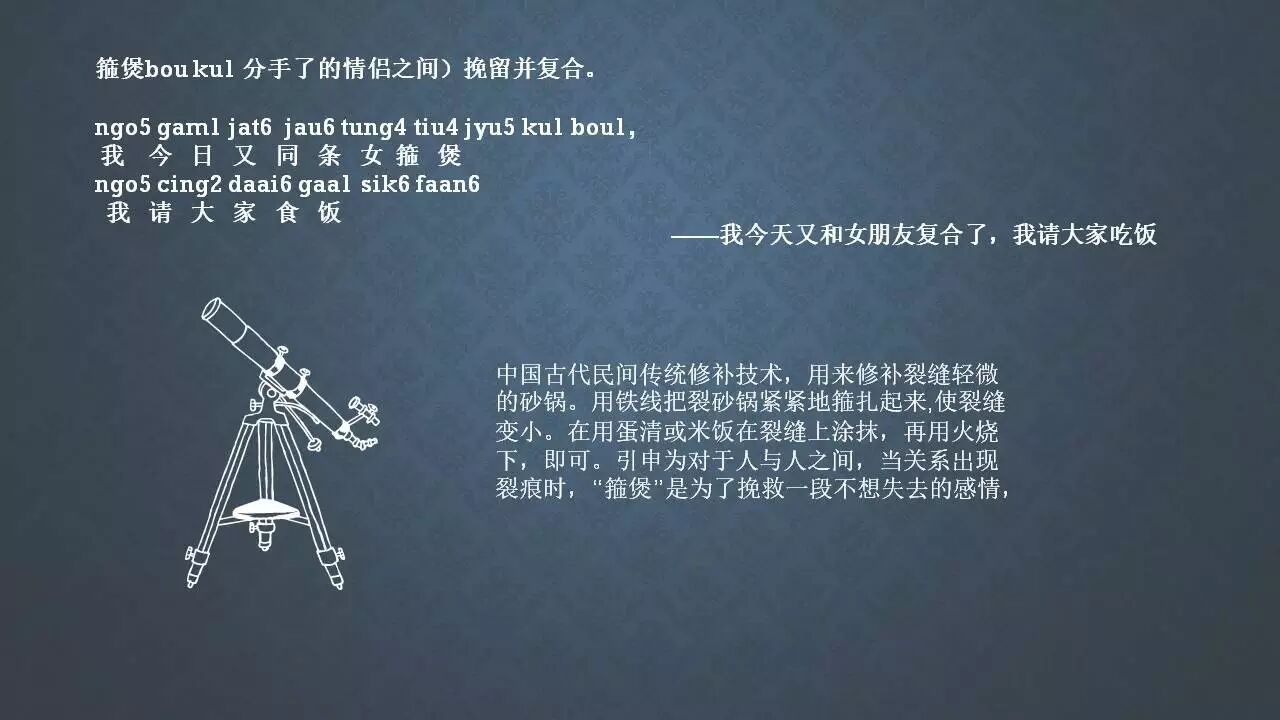这次的粤语课教给了大家一些情侣之间常用的粤语情话,以及一些关于”拍拖(谈恋爱)“的”盏鬼“粤语还有粤语的”拍拖“文化~