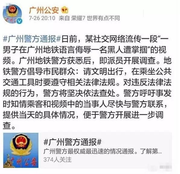 一名中国男子在广州地铁上称呼一名黑人为“黑鬼”