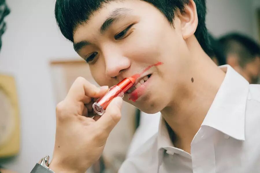 脸带稚气