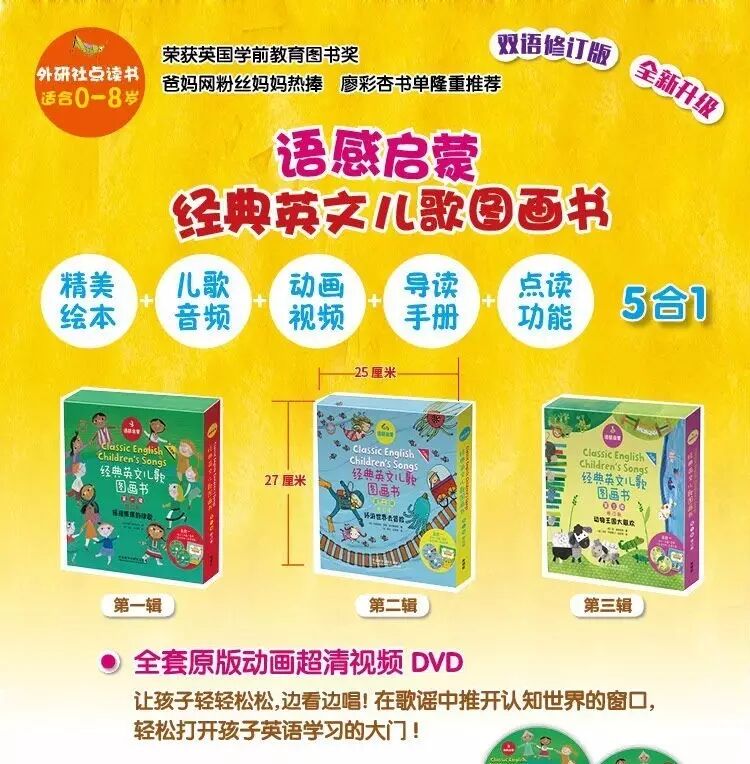 DVD中栩栩如生的动画画面,都来自于图书中优美的插画。您可以和孩子一起边看边唱边跳,享受其乐融融的动感儿歌时光。