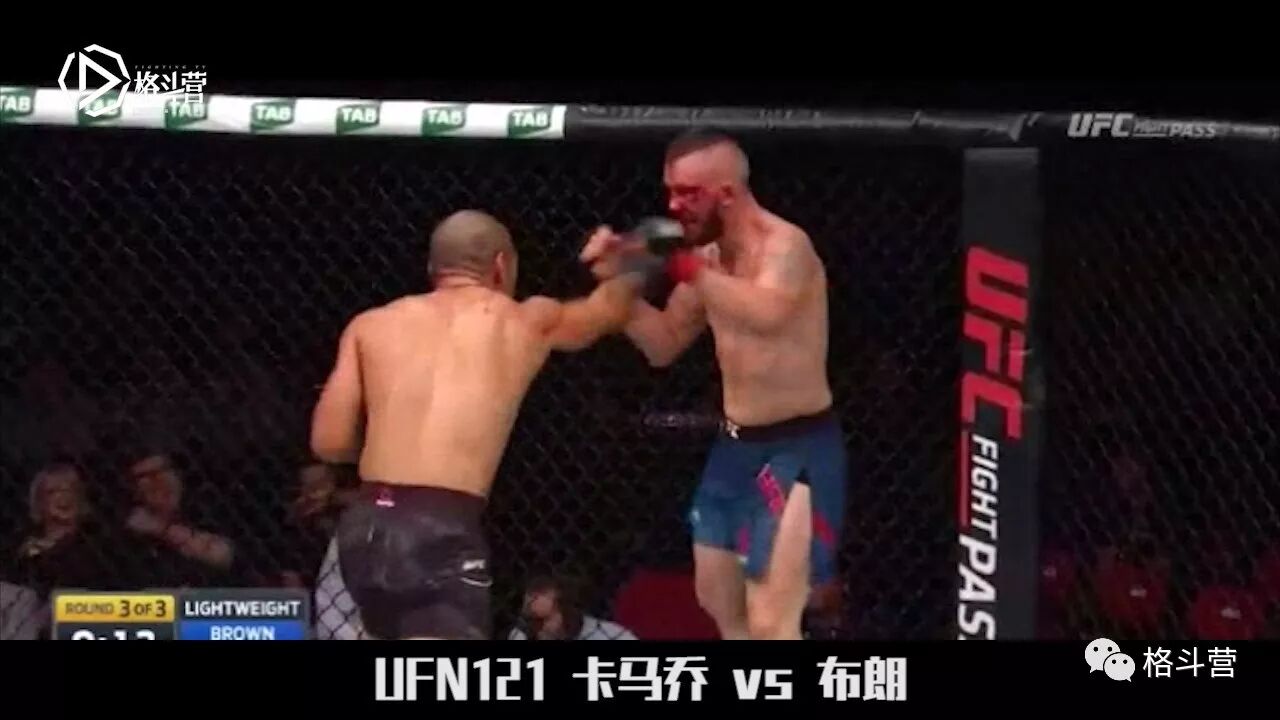 相信看过李景亮与卡马乔比赛的拳迷都知道,卡马乔打法勇猛,善于压迫对手,在与布朗的整场对决几乎一直布朗压制。而布朗同样毫不示弱,甚至拿到了卡马乔的裸绞位,可惜被卡马乔逃脱。整场比赛两人的进攻从没停止,无论站立还是地面技术都发挥的淋漓尽致。回合结束与开始时两人相互致敬的行为令全场观众欢呼,而比赛临近结束时两人在铁笼边的疯狂对轰更是直接引爆了全场气氛,连赛事解说也忍不住连呼精彩!最终卡马乔以分歧判定获胜,这场比赛也被评选为当晚的最佳比赛!