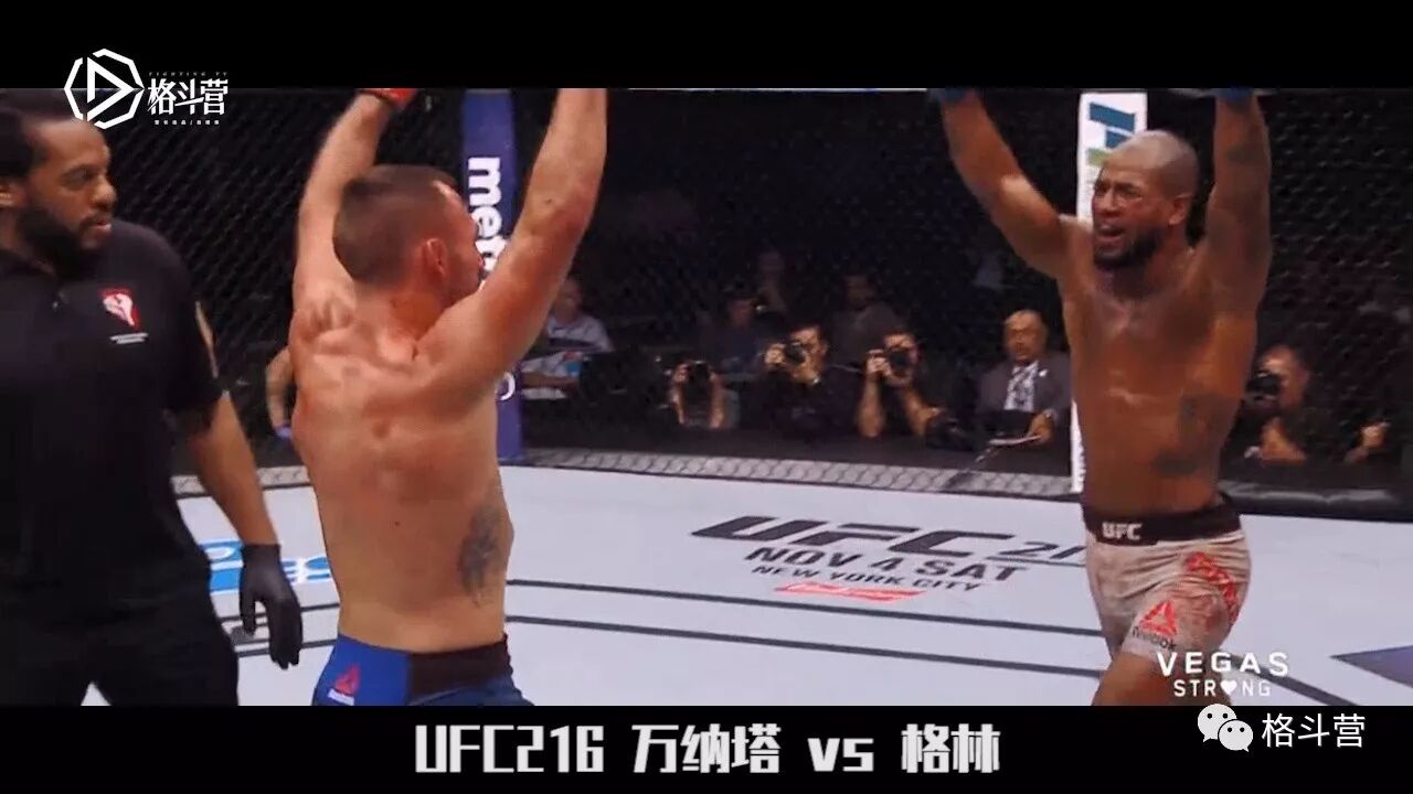 UFC216期,兰登-万纳塔对阵波比-格林。第一回合万纳塔重拳险些就将格林终结,也许是因为打的太兴奋,结果做出了一个低级失误的犯规膝击而被扣分。后两局比赛两人你来我往,万纳塔大浪哥的称号绝非浪得虚名,打法华丽吸引眼球,而格林则凭借深厚的拳击功底稳扎稳打,让万纳塔脸上挂了不少彩,甚至在比赛最后几秒的几记直中面门的重拳让人以为他差点儿能终结万纳塔。最终比赛以平局收尾,万纳塔的笑声表达了他对这个结局感到意外,不过这场比赛因两人出色的表现拿到了当晚的最佳比赛!