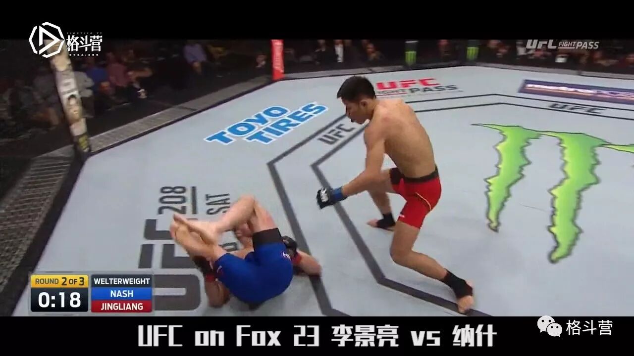 UFC ON FOX 23李景亮对阵波比纳什,这一次景亮再次遇到了更换对手比赛延期的情况!好在长时间备战以及赛前生病似乎并未对李景亮的状态产生太大的影响。比赛第一回合李景亮多次重拳击退纳什,看似优势缺在近身换拳中被纳什一记结结实实的平勾击倒,并被拿到裸绞位,好在李景亮有惊无险逃了出来。第二回合纳什开始发力,接连不断的重击以及磨血战术让李景亮难以招架,然而就在这样的情况下,景亮顶住压力抓住机会一记冷拳击中纳什下巴,接着后手摆拳击中太阳穴而成功KO纳什。这场不可思议的绝地反击也让拳迷对他的实力有了新的认识。