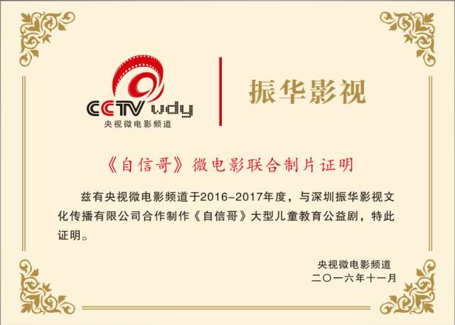 央视微电影频道为《自信哥》开辟专题首播权限,并提供最大力度的宣传推广支持,例如如:焦点视频位置播出,站内新闻推送。