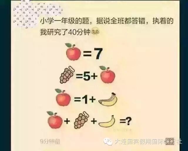 答案对照,请【关注】大连国宾假期国际旅行社 回复【小学一年级】