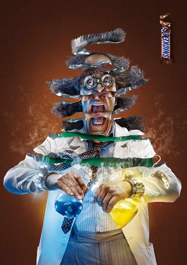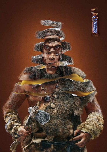 饿的时候,你可以是任何人,疯狂的科学家怪蜀黍、满脸皱纹的老婆婆,或者是疯狂的原始人,那么,来条士力架!横扫饥饿,做回自己!