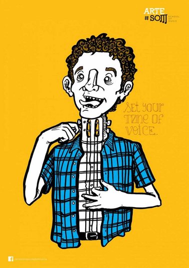 Arte&Som音乐学院创意广告:Arte&Som音乐学院能满足你在这方面的渴求,通过专业的发声训练,Arte&Som让你的声线变得更加完美,每个人就像把经久失修的乐器,上个油,调个音,活学善用,在Arte&Som音乐学院里,就能找准属于自己最迷人的好声音。