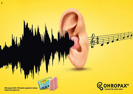 Ohropax耳塞创意广告:Ohropax耳塞可针对不同危险为你的耳朵定制出不同的防范措施,给你耳朵带去最奢华的待遇。