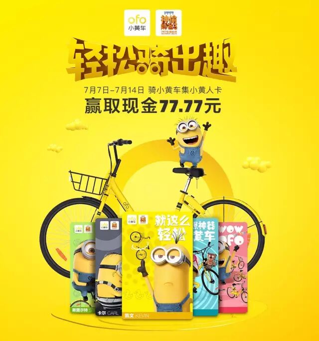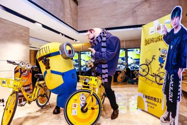 ofo小黄车和《神偷奶爸3》里的小黄人合体了