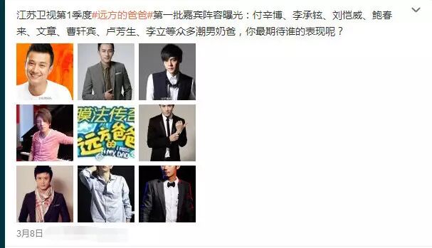 不过陈赫这一复出,估计文章已经哭晕了。他正在低调试水温,谁知道陈赫后来者居上“咣当”一下已经坐水里了……于是乎懂小姐就看到,有微博知名博主在网上曝光了参加《远方的爸爸》录制的嘉宾阵容,文章就在其中: