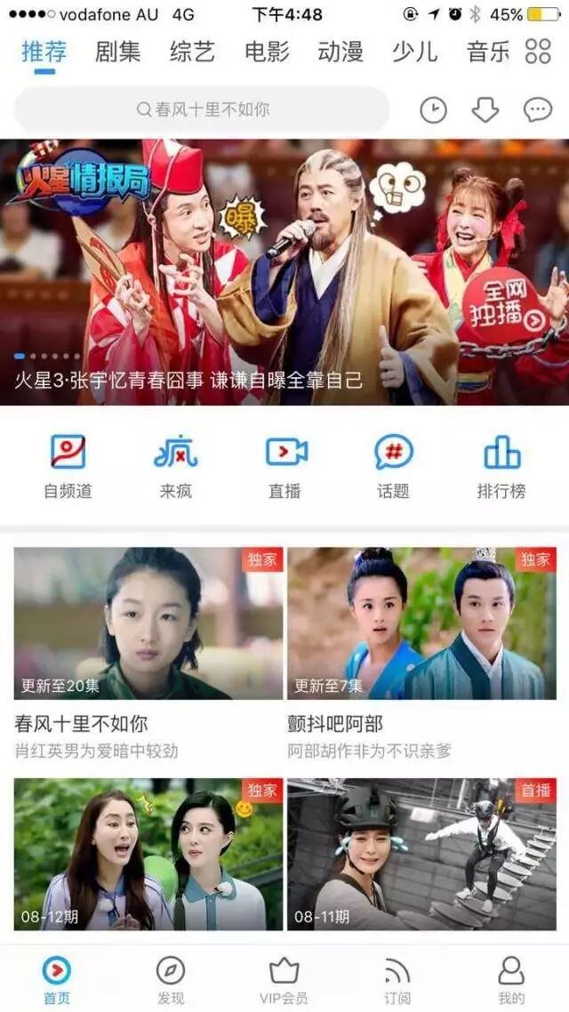爱奇艺同样也是一款可以在大土澳看大多数国内视频的app。相比于优酷,爱奇艺的视频内容可以说是更符合年轻人的口味~
