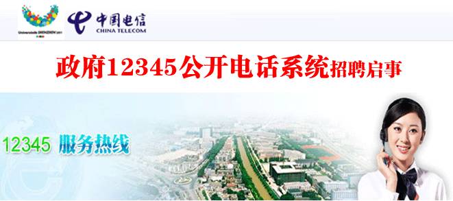 福田区12345政府热线文职:50名,提供住,转正后月收入4000-8000元,月休8天,长白班。