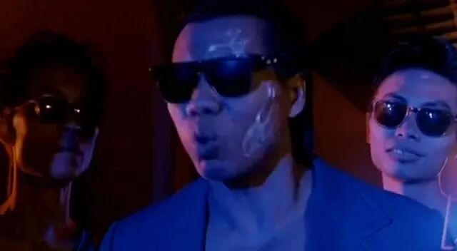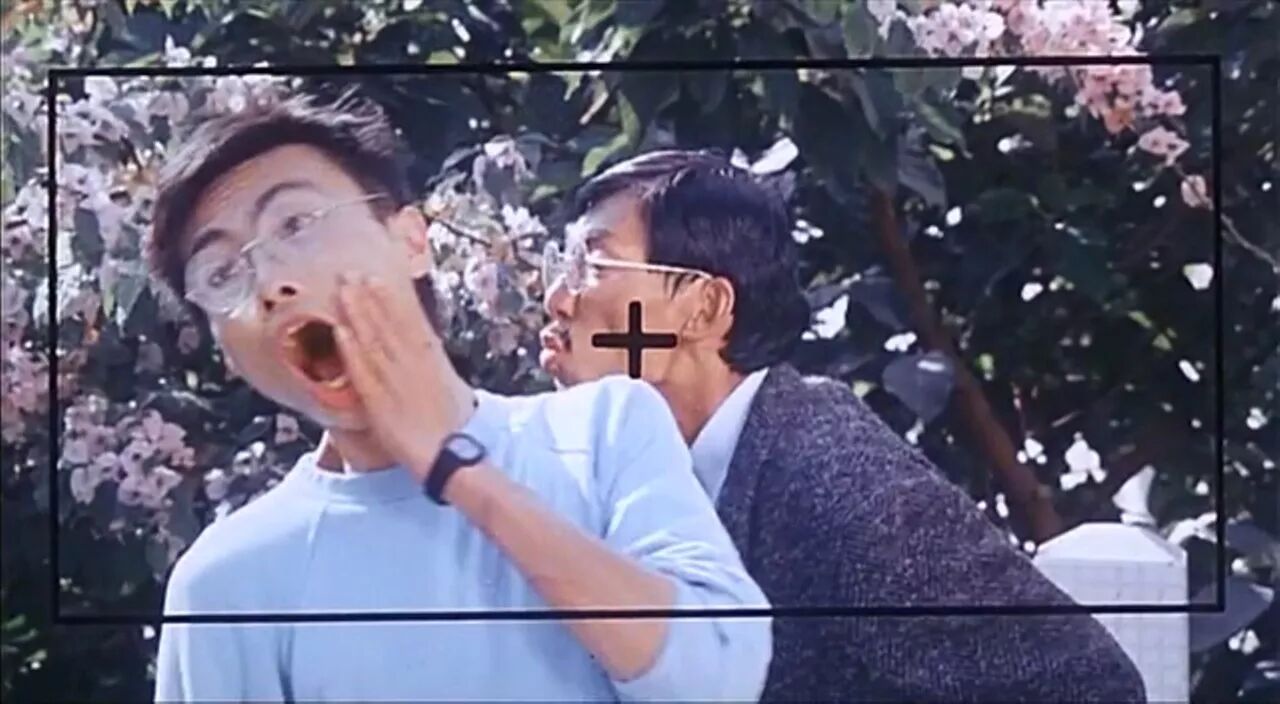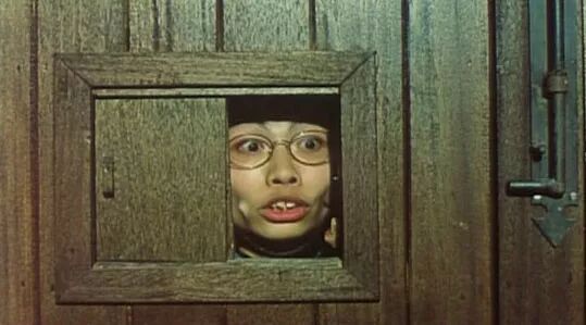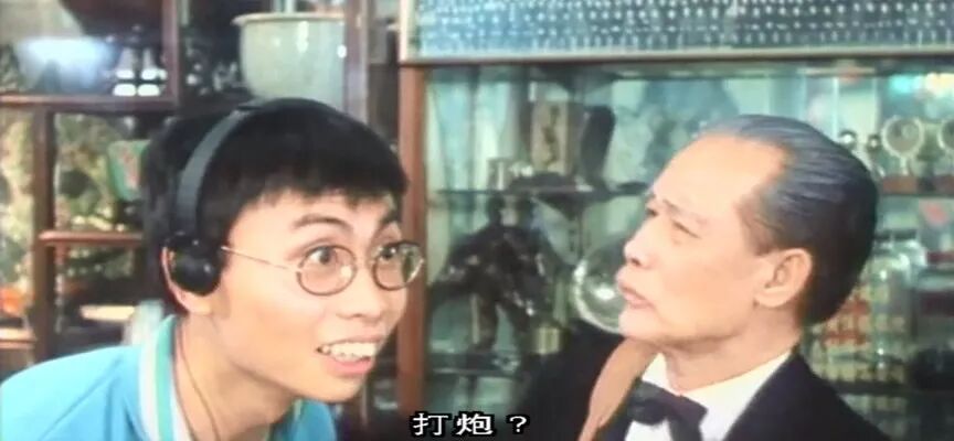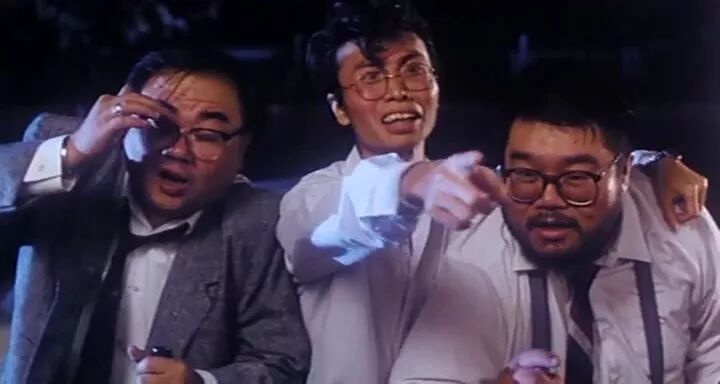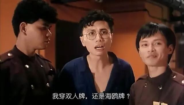 1988年《霸王女福星》里饰演警察,在口供房监视室里偷看女人换衣服(中间这位)。