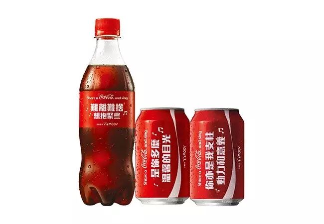 可口可乐将每一瓶“歌词瓶”化身为表情达意嘅载体,令消费者可以向家人、朋友、爱人、同事或同学“唱出”心 声,分享情谊。