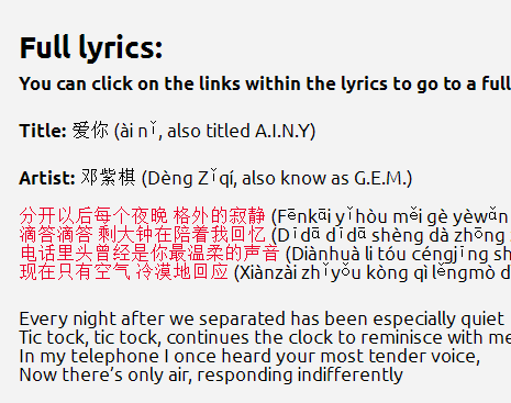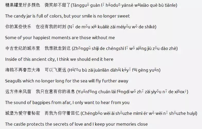 又一次奉上了中英文+拼音的歌词,非常业界良心: