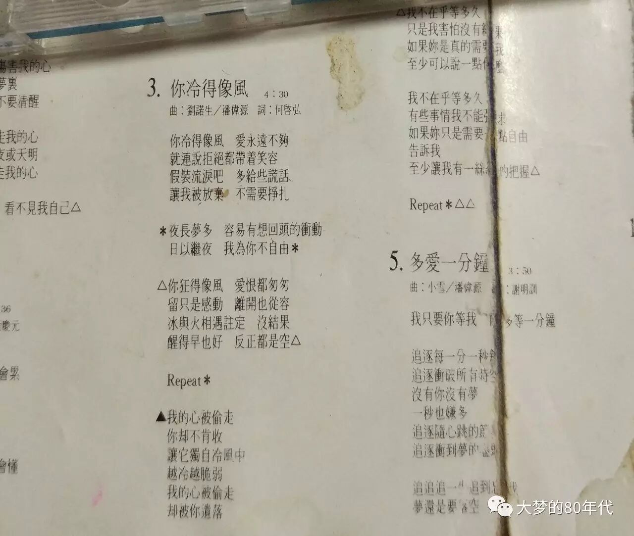 唱着唱着,香港流行歌曲脱离了电视剧,单独发展了。于是,离愁别绪多了起来。记得小学四五年级,四大天王还没红的时候,有一位高年级的同学,经常竖着中分头,穿着夹克衫,脚踏回力鞋,一脸忧郁地唱:“飞不回妇门散不回,为何我森一遍红灰……哦卡为我拼拼嘿付内(愁绪挥不去苦闷散不去,为何我心一片空虚……为何我却偏偏喜欢你)。”