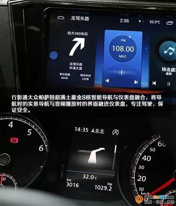 从斜视到直视,就差行影通帕萨特超薄土豪金8核智能导航与仪表盘之间的融合,行影通将导航时的实景导航与音频播放时的界面融进仪表盘,专注驾驶,保证安全。