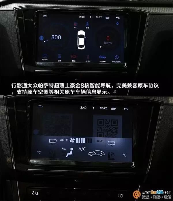 换装导航,匹配也是车主关心的问题。行影通大众帕萨特超薄土豪金8核智能导航完美兼容原车协议,支持原车空调等相关原车车辆信息显示,此外支持倒车轨迹、倒车影像、倒车雷达、原车方向盘控制车机相关的功能。