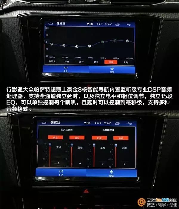 纵观市场上的车机,不能发现,音质型主机对车主的吸引力更大,更大厂商也针对车主的需求,在音质上下一番苦心。行影通自然也不落人后,行影通大众帕萨特超薄土豪金8核智能导航内置监听级专业DSP音频处理器,独立15段EQ,可以单独控制每个喇叭,且延时可以控制到毫秒级,支持多种音频格式。对于主张车机音乐至上的车主来说,行影通大众帕萨特超薄土豪金8核智能导航确实能满足车主的追求。在只改装原车主机之外,一曲听毕,音质纯净无杂质,澎湃有力,立体感强,令人身不自主会随着音乐而舞。