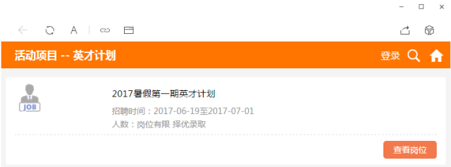 3、选择“英才计划”后,进入以下页面,点击右下角“查看岗位”