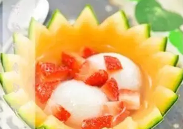 草莓汤圆蜜瓜盅
