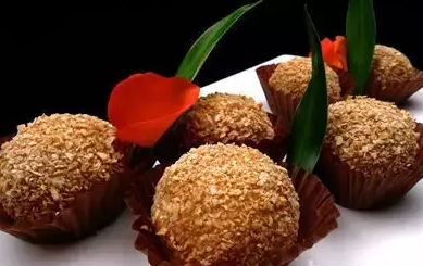 3.喜欢花生的可以滚花生碎,喜欢椰蓉就滚椰蓉哦,里外都是馅儿,口水控制不住啦!