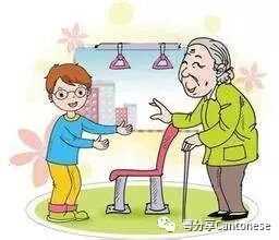 每到上下班高峰期,上班族无可避免的要面临挤公交车的困境,挤公交车的粤语读作“逼巴士”(“逼”在粤语中有“拥挤”的意思,例如形容一个地方好挤我们会说“好逼”),在车上我们到站了,想提示司机时,会说“有落”,因为“下车”在粤语当中的说法是“落车”,所以“有落”就是“有人要落车”的意思啦。我们在车上会常常听到“尊老爱幼是中华民族传统美德,请您为有需要的乘客让座”,那么让座在粤语中读作“让座”,一般我们主动让座时就会说“俾你坐啦”(给你坐吧)。