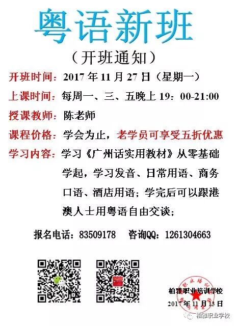 预期目标:从零基础学起、日常用语、商务口语、酒店用语;学完后可以轻松使用粤语交流、跟港澳人士用粤语自由交谈、胜任日常工作;每月循环开课,学会为止;