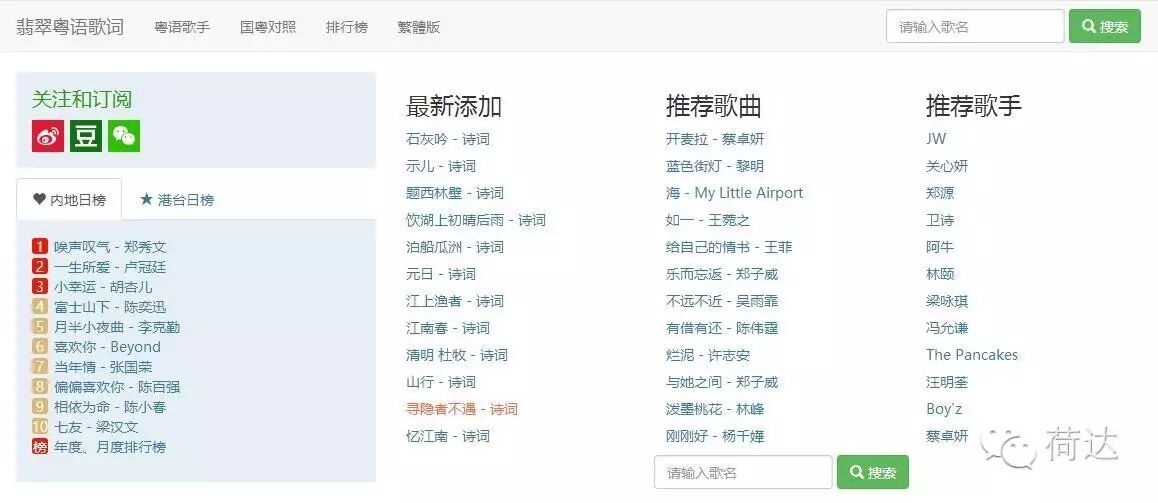 借助粤语拼音来唱粤语歌,我们还需要一个网站帮忙——【翡翠歌词】(网上搜索即可)