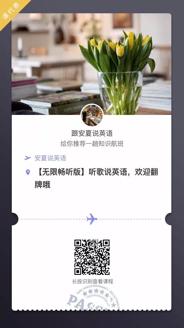 本期节目为歌曲部分节选版,另外直播间开通了《听歌说英语》付费版本19.9元无限畅听版(单首/9.9元)。若需要整首歌曲详细讲解分析版本,请前往直播间(识别文末二维码)收听+学习。