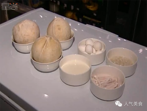 原忠椰皇汤圆外形新颖,盛汤圆的器皿是原生态的椰子壳,吃起来椰味香浓,甜而不腻。