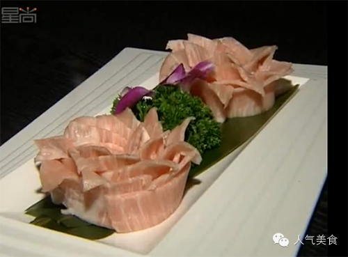 这“花开富贵”就是松阪猪肉做成了花的形状;