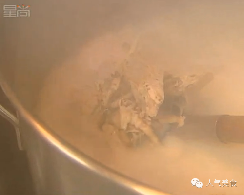 这猪肚鸡的汤底是店家用老母鸡的鸡肉、鸡爪以及猪腿肉、猪大骨和多种中药材熬煮12个小时所熬出的。