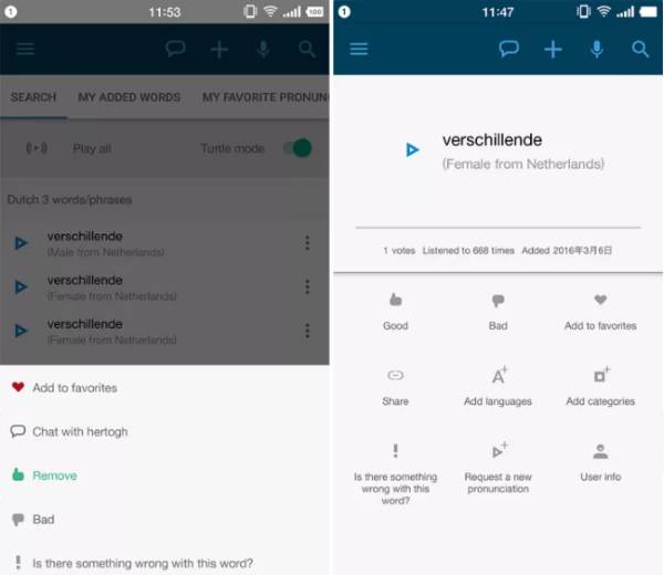 Forvo 是一款学习外语口语的APP,在这里你可以跟当地人学习正确的口语发音(不是请别人录的音,而是真的当地人在发音。)所以跟着 Forvo 你可以学到最准确的发音。