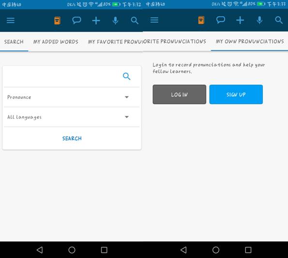Forvo 支持ios以及安卓系统,所以也不用考虑换手机,不过使用安卓机的小伙伴们想要注册 Forvo 使用必须要搭载Google Play才能使用,不然只能进行最简单的操作“搜索”,其他功能就享受不了了。